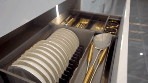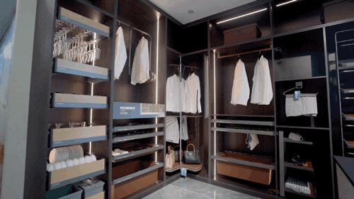 洞察人居需求、延续美学基因,邂逅机械浪漫、收纳顷刻之间。360°陀飞轮高柜旋转拉篮开辟取放舒适圈,兼容高矮物品,提供最方便的家居体验;随意悬停的星云升降机赋予吊柜拿取更轻松的方式,让遥不可及变得触手可及;海纳百川的希勒4.0系列拉篮及基多拉系列拉篮,巧用抽中抽内推设计,精细分区也能精准收纳;推拉丝滑的G系列二节小全拉阻尼导轨,是介于全拉和半拉中的精密平衡,是隐与美一体化的简约。